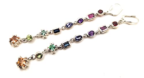 Lange Edelstein Ohrhänger aus 925er Silber in Regenbogenfarben, echte Edelsteine, aufwendig, 6cm lang, Unikat, Handarbeit