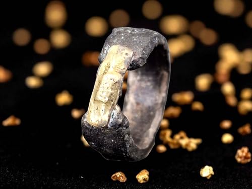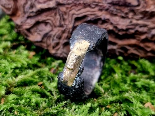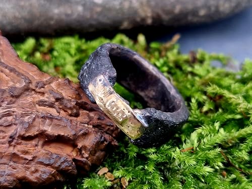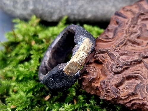 LeoLars-PABE 925er Silber Design Ring mit 585er Gelbgold Pflaster, Gr.54 (17,2), Bicolor, natürlich, rauh, geschwärzt, Unikat, Handarbeit