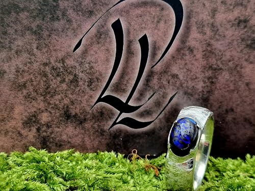 LeoLars-PABE Boulder Matrix Opal Design Ring, Unisex, Gr.66 (21), aus 925er Silber, eismattiert, Opal mit Opaladern mit dunkelblauem Opalfeuer, Unikat, Handarbeit