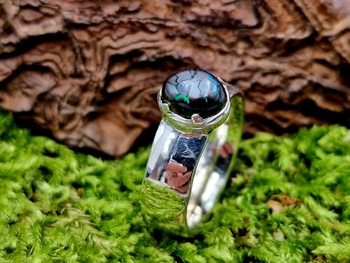 LeoLars-PABE Boulder Matrix Opal Ring, Gr. 53 (17), aus 925er Silber, schlicht, viele Opaladern mit brilliantem grünen Opalfeuer, Unikat, Handarbeit