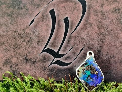 LeoLars-PABE Boulder Opal Anhänger mit strukturierter Oberfläche aus 925er Silber, intensives blau-grünes Opalfeuer, Kräftig,Unikat, Handarbeit, Unisex
