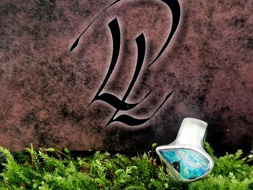LeoLars-PABE Boulder Opal Design Ring aus 925er Silber, mit brillianter Multicolor Chrystal Opalschicht und Opalfeuer, Seidenmatt, Unikat, Handarbeit, Gr. 54 (17,2)