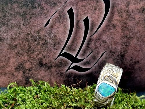 LeoLars-PABE Design Ring aus 925er Silber mit Lightning Ridge Opal, Gr. 60-61 (19,3), Opalfeuer in tollem grün und blau, rustikal, verspielt, Unikat, Handarbeit