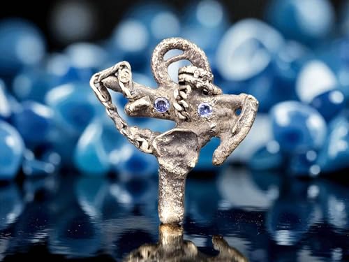 LeoLars-PABE Frei gestalteter Design Anhänger aus 925er Silber mit zwei rund facettierten Tansaniten, teilgeschwärzt, Unikat, Handarbeit, Unisex