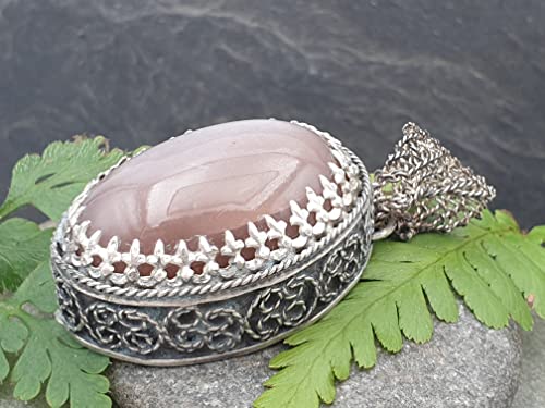 LeoLars-PABE Großer indischer Mondstein Filigree Anhänger aus 925er Silber, dark-rose, massiv, groß, teilgeschwärzt, Unikat, Handarbeit
