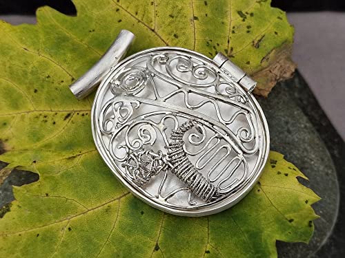 LeoLars-PABE Großes Filigree Medaillon aus 925er Silber, durchbrochenes Muster in Aboriginal Art, 52.8 x 42.1 x 10mm, Unikat, Handarbeit