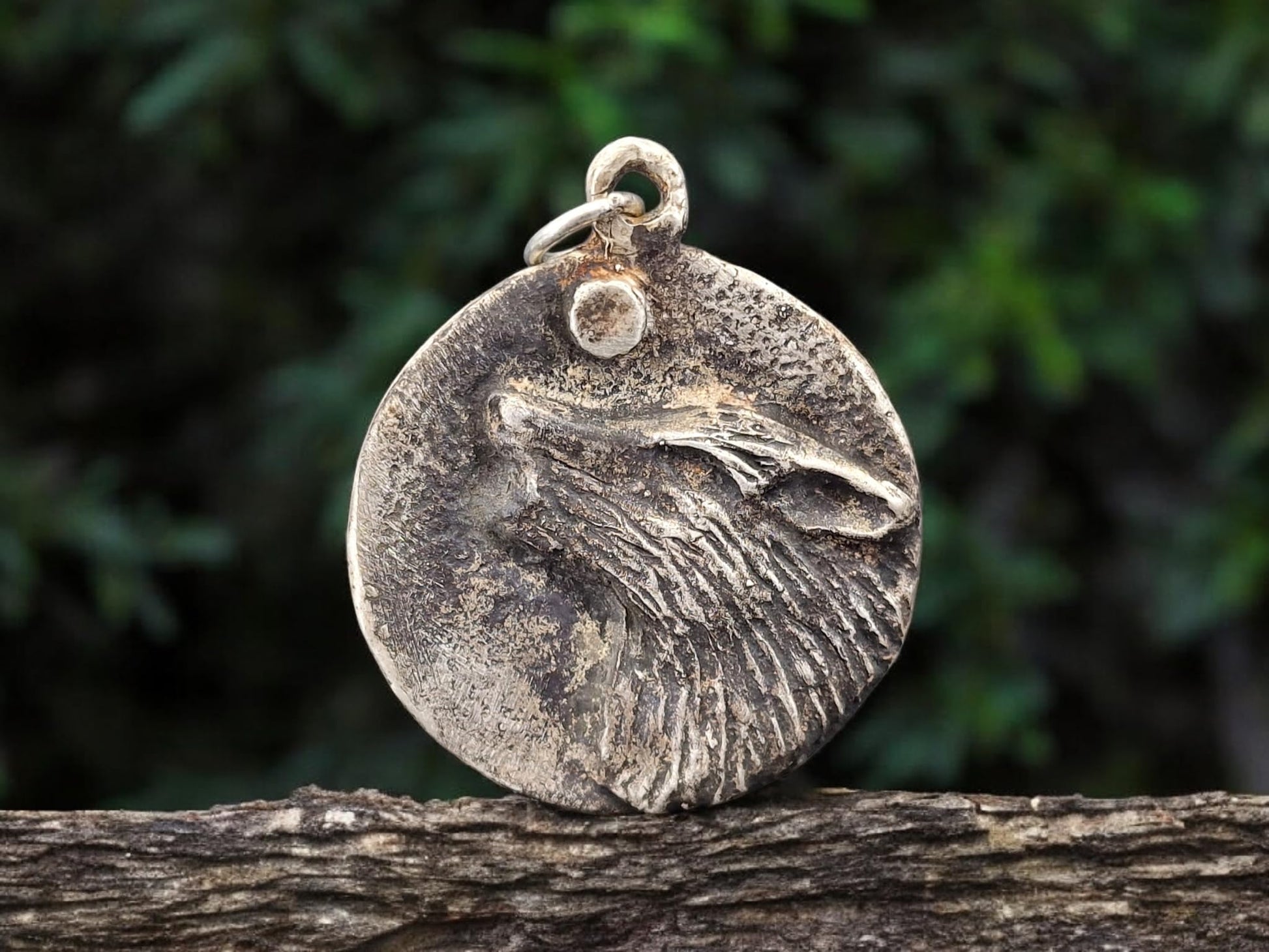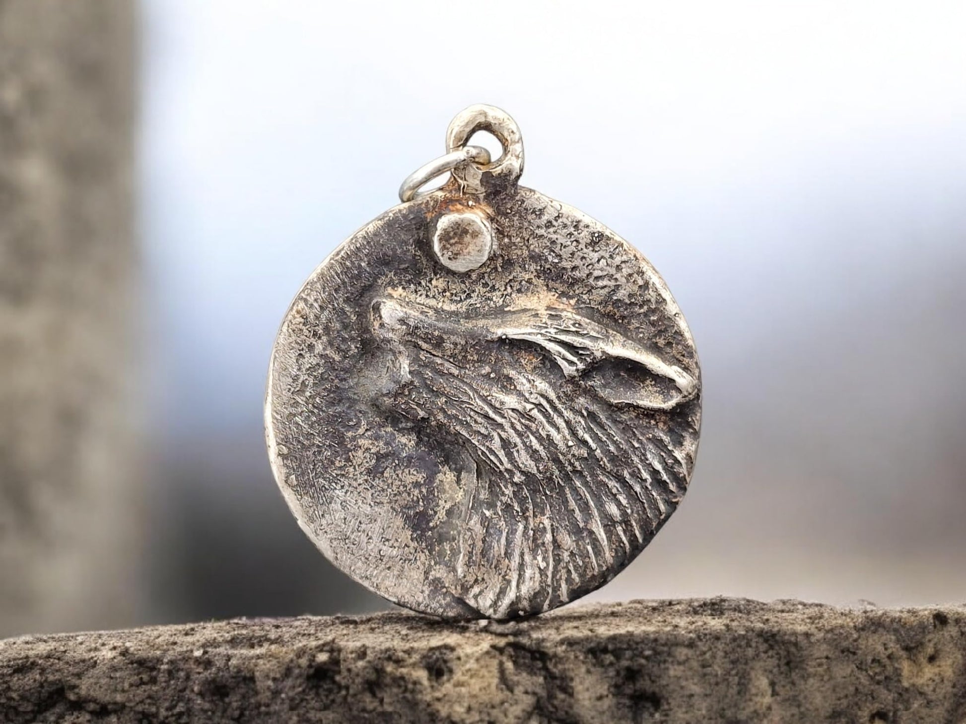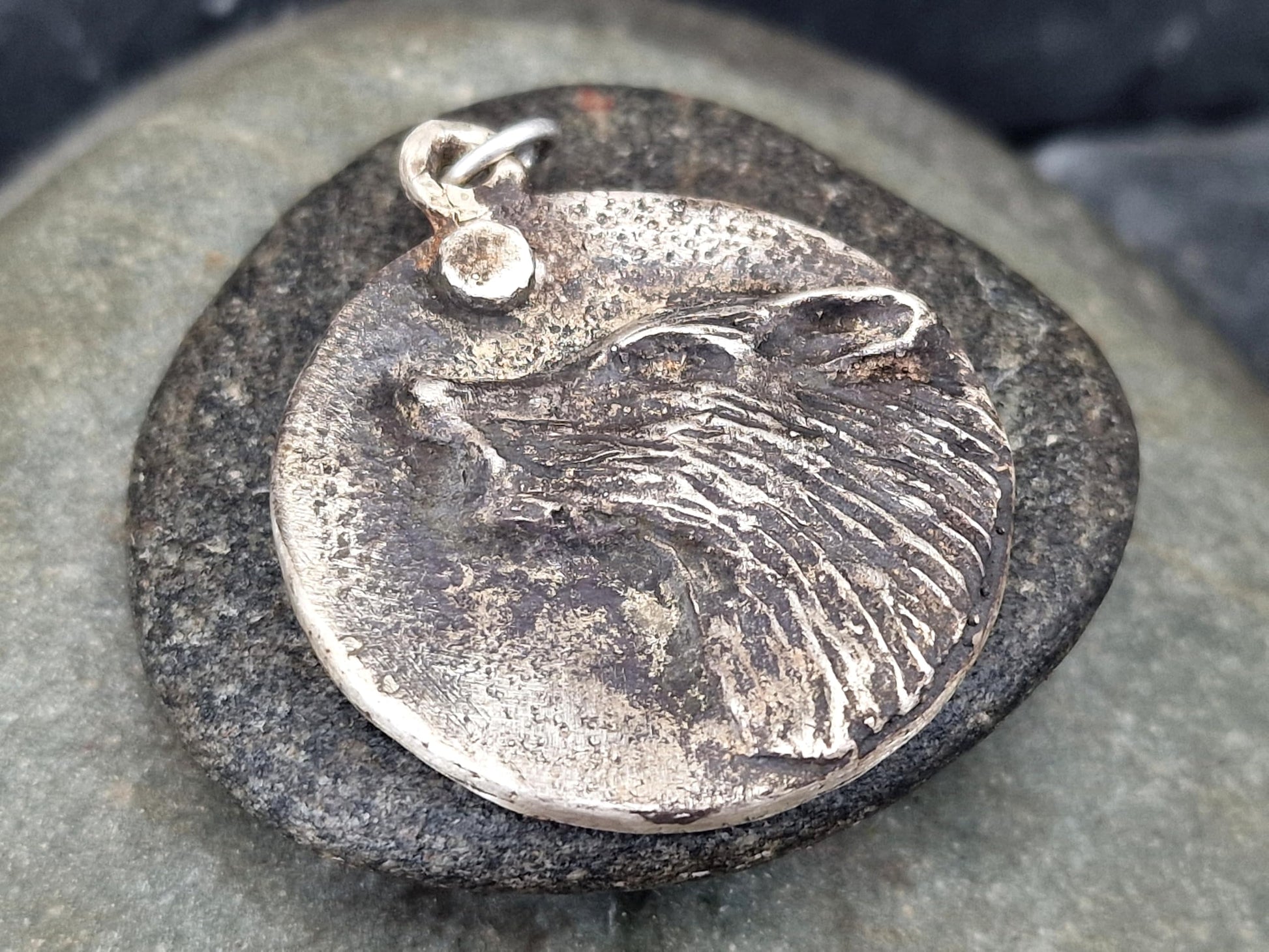 LeoLars-PABE Heulender Wolf Design Medaillon Anhänger aus 925er Silber, teilgeschwärzt, massiv, im Hexer Style, Unisex, Unikat, Handarbeit