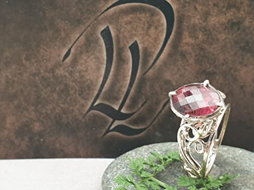 - Himbeerfarbener Turmalin Filigree Ring, Gr. 58