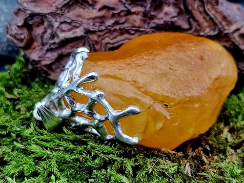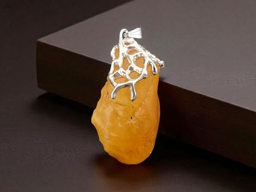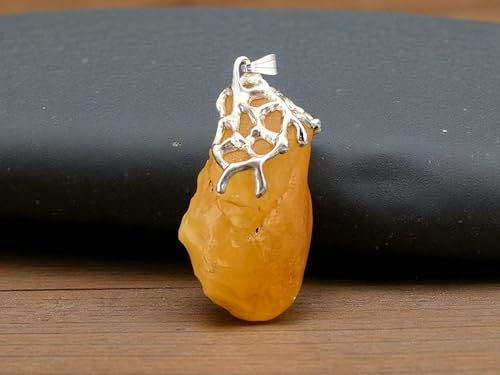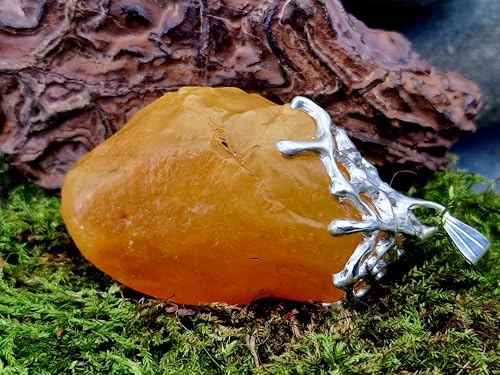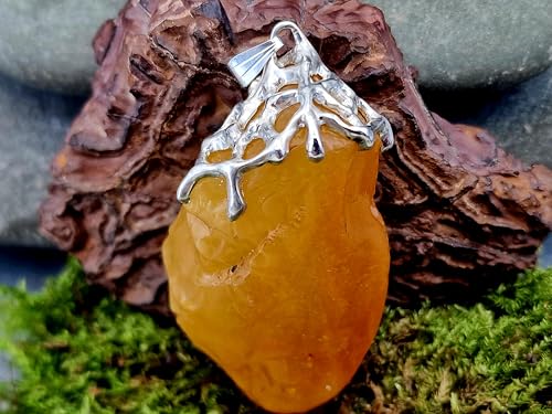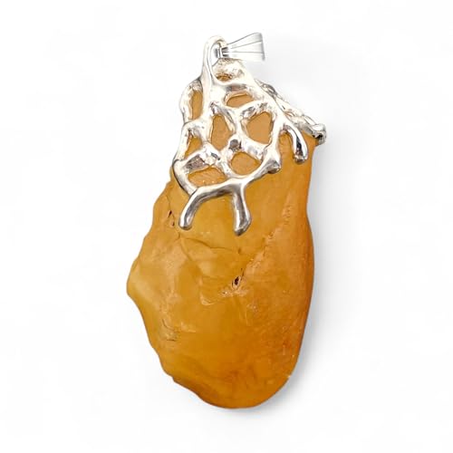 LeoLars-PABE Honiggelber opaker Nordsee Bernstein Design Anhänger aus 925er Silber, natürlich, unbearbeitet, Gitterstruktur Tropfen Design, groß; 52mm x 29,4mm, Unikat, Unisex, Handarbeit