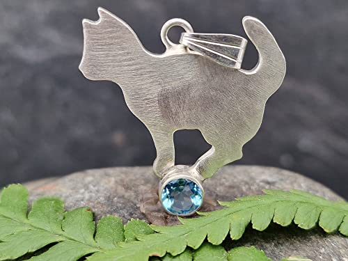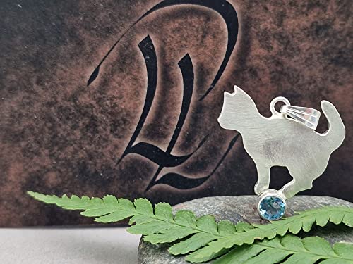 LeoLars-PABE Katzen Anhänger aus 925er Silber mit Blautopas, mattiert, Katze, Unikat, Handarbeit