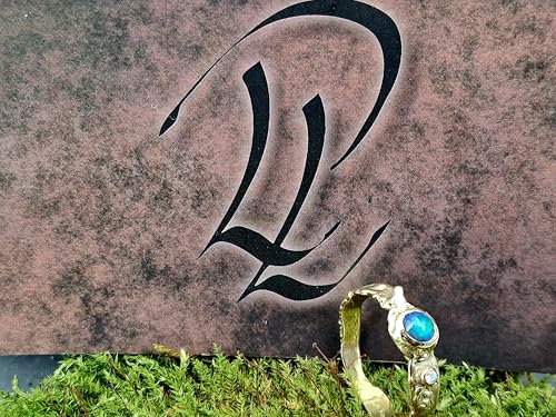 LeoLars-PABE Lightning Ridge Opal Design Ring aus 585er Gelbgold, Gr. 57-58 (18,4), angeschmolzenes Design, Diamant als Akzentstein, grünes Rolling Flash Opalfeuer, Unikat, Handarbeit