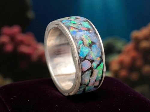 LeoLars-PABE Lightning Ridge Opalsplitter Design Ring, Gr. 55/56 (17,8), aus 925er Silber, Opalmosaik in Multicolor, Unikat, Handarbeit
