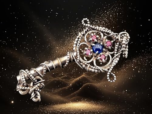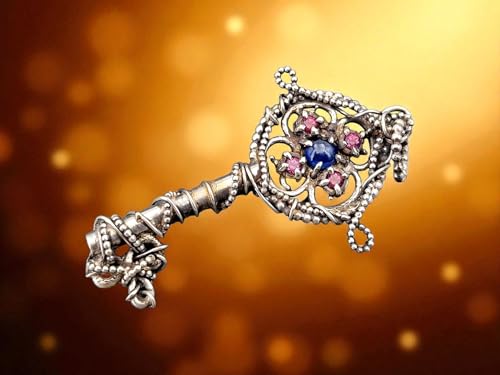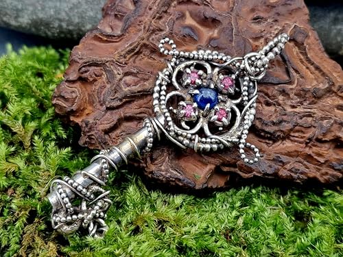 LeoLars-PABE magisch mystischer Design Anhänger aus 925er Silber mit blauem Saphir und vier Granaten, verspielt, zauberhaft, Unikat, Handarbeit
