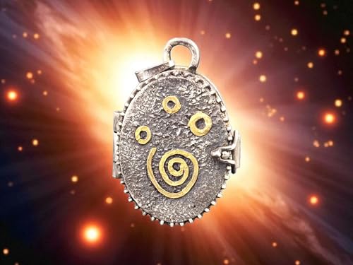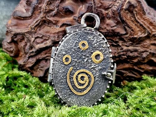 LeoLars-PABE Magisches Medaillon Anhänger Spirale des Lebens unter Sternen aus 925er Silber und Feingold Elementen, verspielt, mystisch, teilgeschwärzt, Unikat, Unisex, Handarbeit
