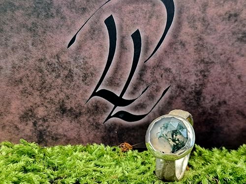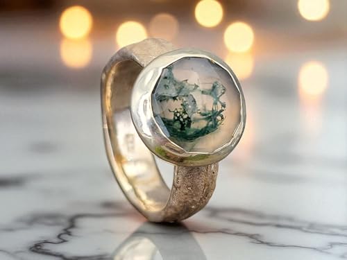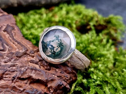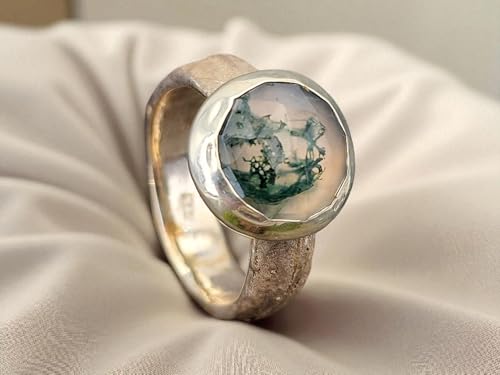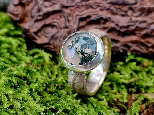 LeoLars-PABE Moosachat Design Ring, Gr. 58 (18,5), aus 925er Silber mit tollem Innenleben und Kräuterdesign 420 Nr. 0102 Ringschiene, Unikat, Handarbeit
