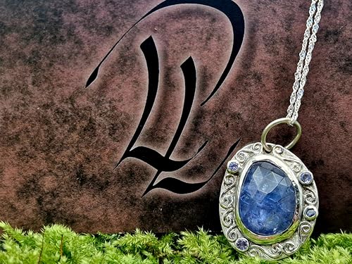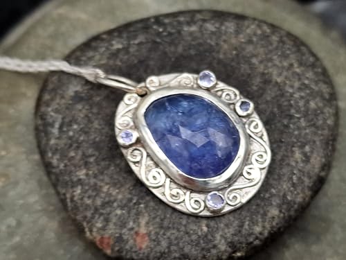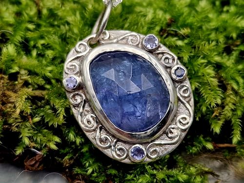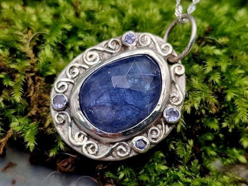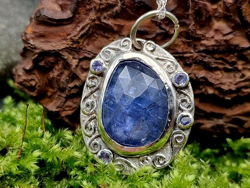 LeoLars-PABE Tansanit Design Anhänger aus 925er Silber, ein großer Tansanit und vier kleine Tansanite, verspielt, 45cm Silberkette, Unikat, Handarbeit
