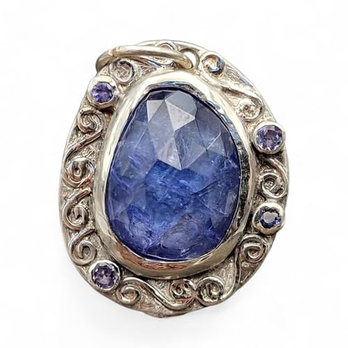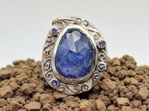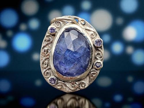 - herrlicher, großer Tansanit im Rosenschliff und 4 kl. facettierte runde Tansanite, Großer Stein: 16,5mm x 12mm, 4 kleine 2mm Durchmesser, insgesamt 15,8 Karat