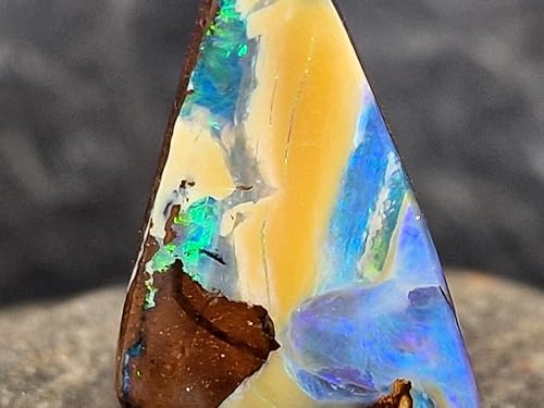 - toller Picture Stone Stein in blau-beige-braun mit partiellem intensiven grünem Opalfeuer Steinmaße: 25mm x 16mm x 4,9mm